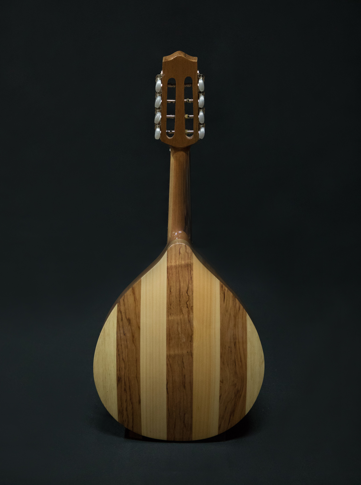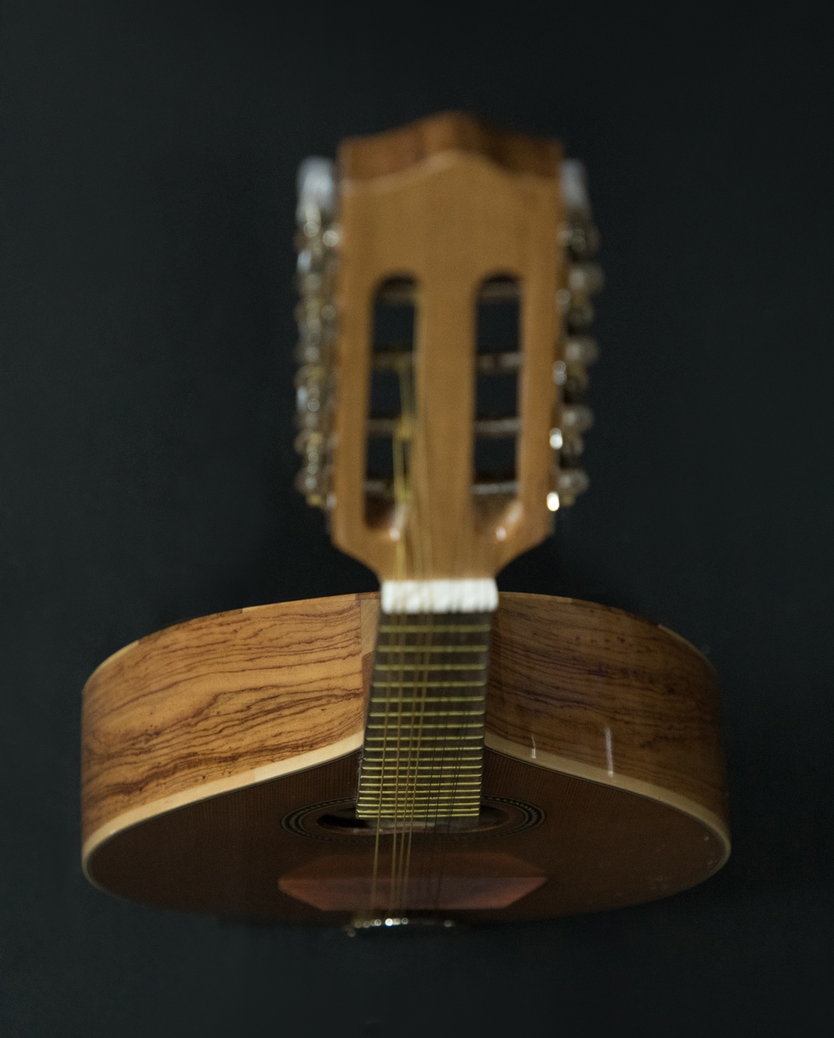 Instrumento pequeño de cuerdas en órdenes dobles. Suma 8 cuerdas establecidas en 4 pares. Luce un bello sonido por su armado con madera de Palo Escrito.